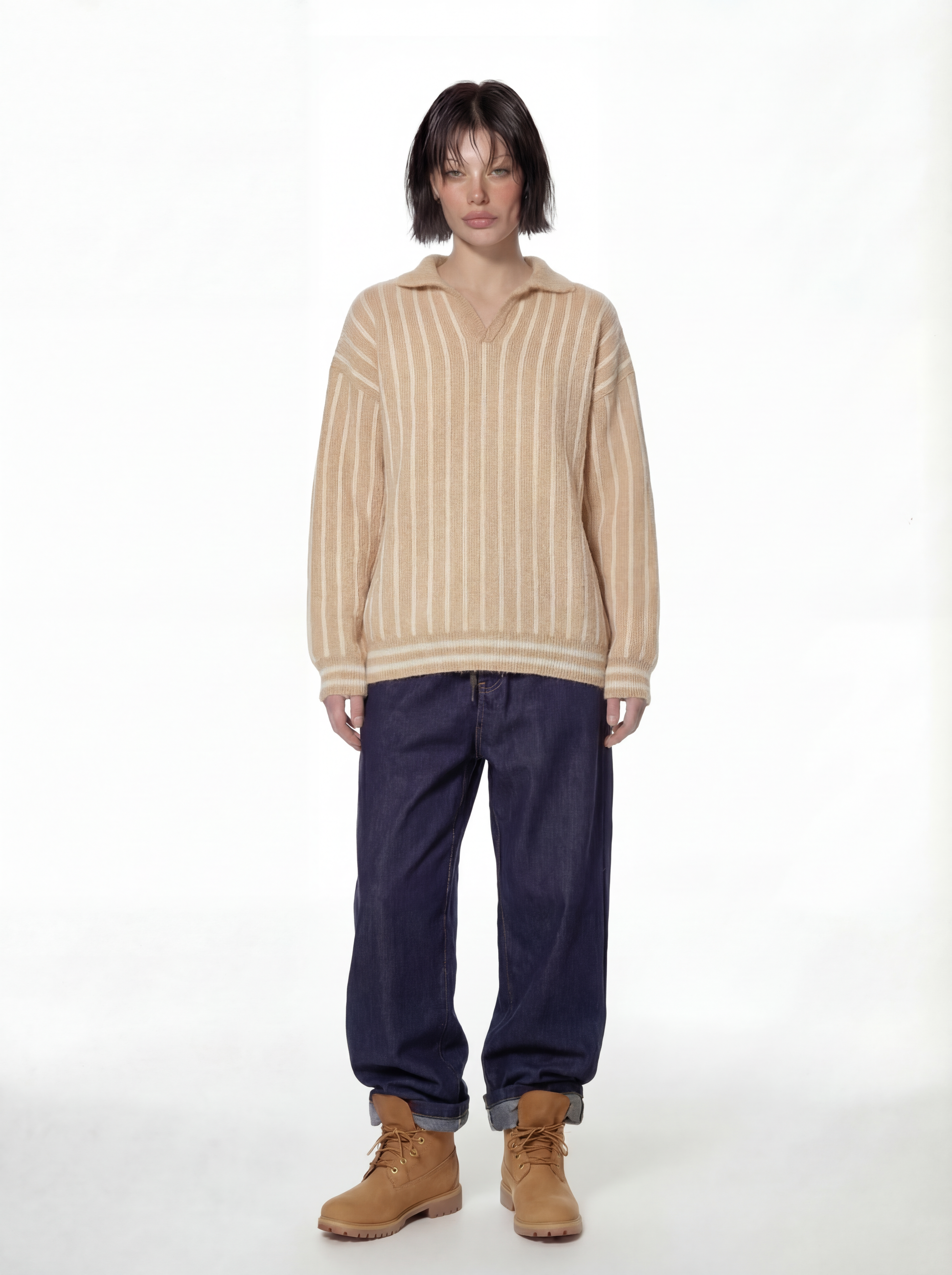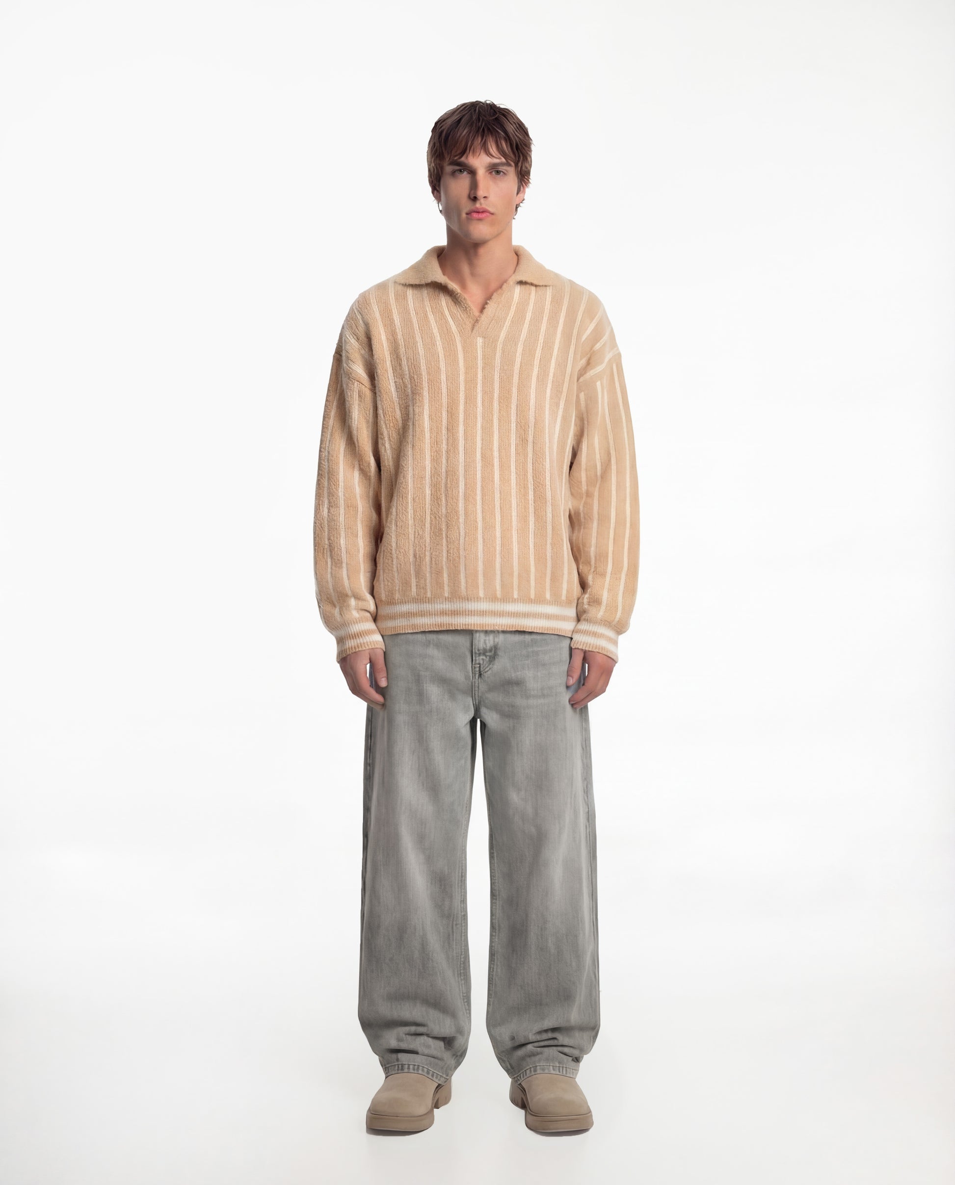 Beige Mohair Polo Sweater