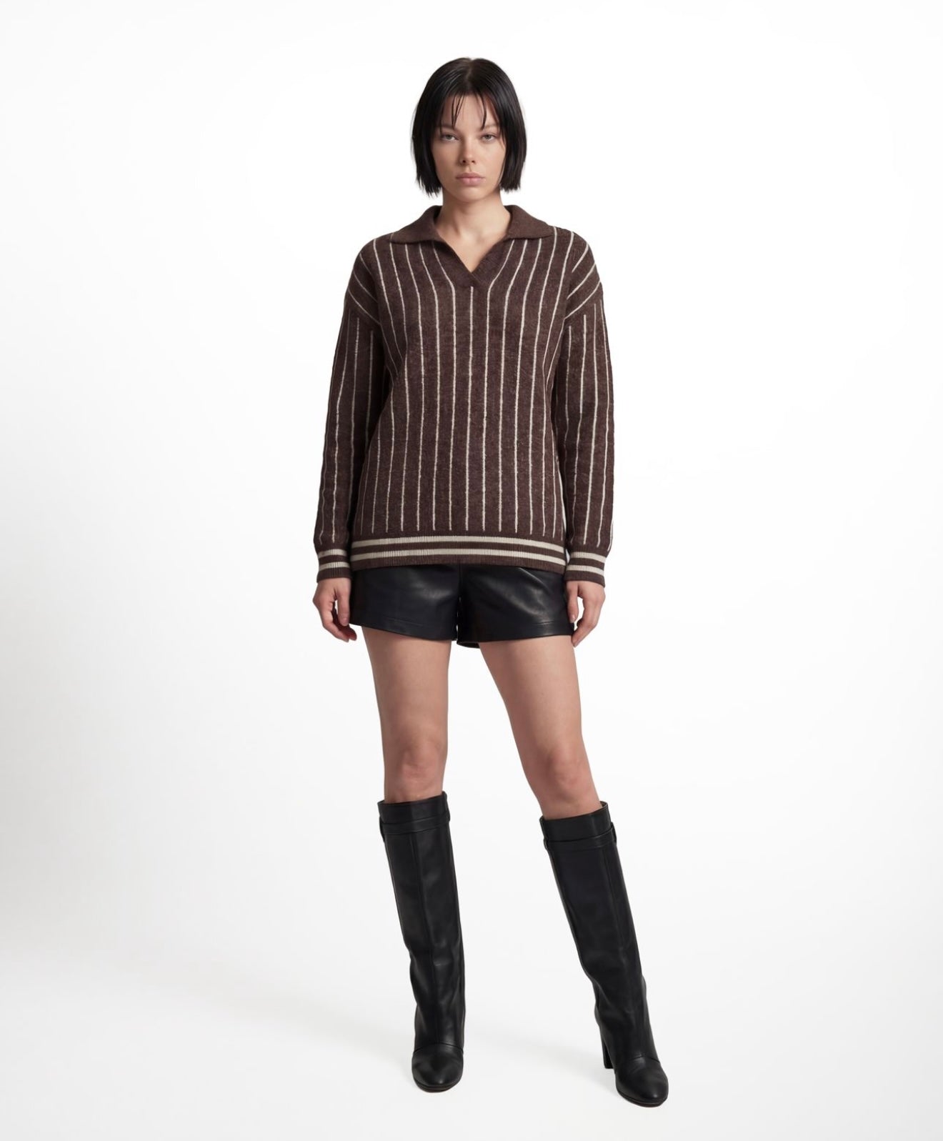 Brown Mohair Polo Sweater