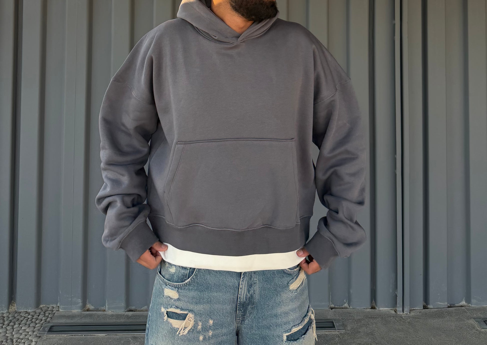 Grey Baggy Layered Hoodie